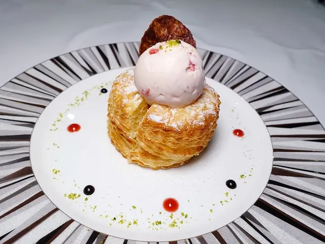 甜度不高的千層甜甜圈很得我心,上頭為草莓冰淇淋
