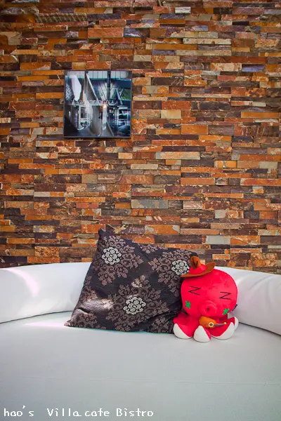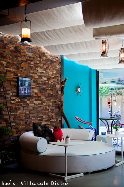 正中是以大大的英文店名 - Villa.café Bistro為主,中文店名 - 悅禾莊園 咖啡酒食館放在角落為輔。