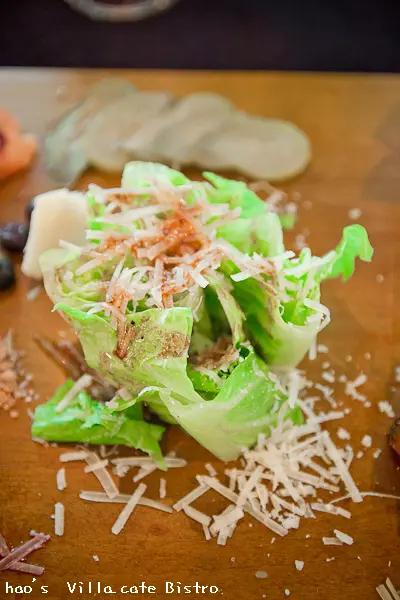 生菜沙拉表現一般,簡單的生菜葉灑上紅酒醋及大量乳酪絲,清脆爽口。