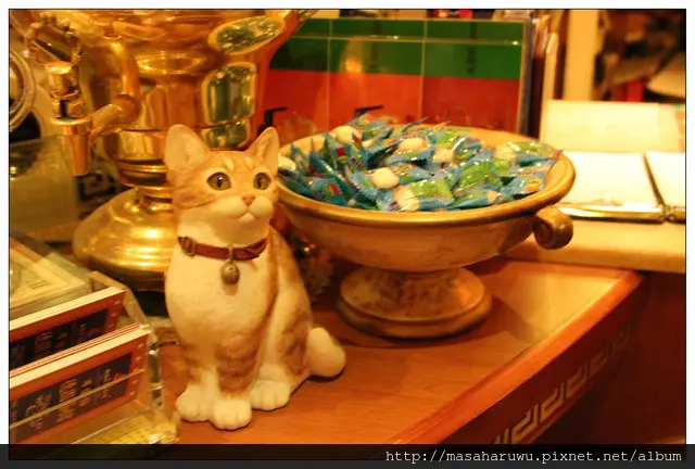 吧台上可愛的小貓咪在告訴你~歡迎取用薄荷糖XD