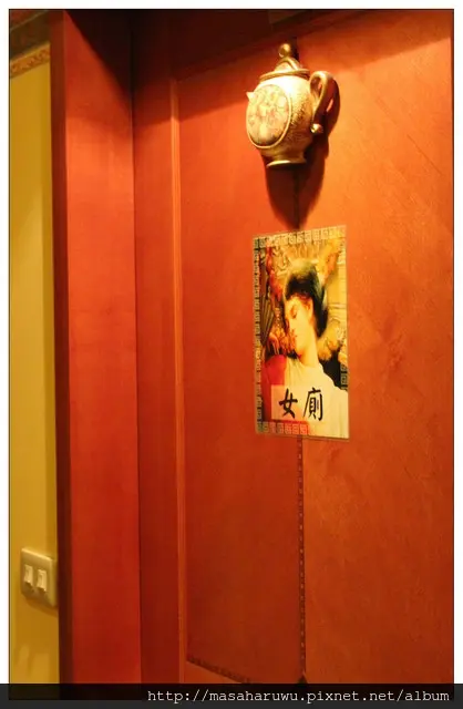 廁所的門上也大手筆的掛上精緻茶具裝飾