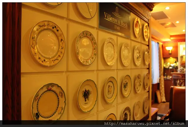 牆壁上展示著老闆在店裡給客人用的德國Villeroy&boch骨瓷茶具~