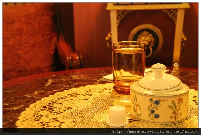 我們桌上的糖罐好可愛~~上面有很多可愛的小花~~而且桌上還有蕾絲桌墊哩~