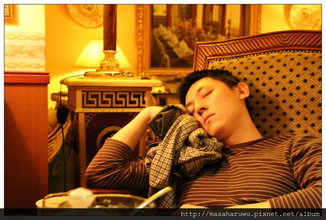 話說可能是因為椅子很好坐~店內放的音樂又很輕柔~蔡先生居然不小心給他睡著了!!
