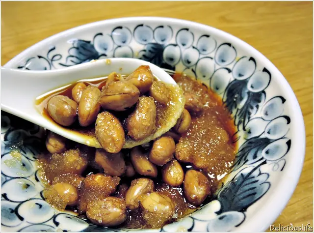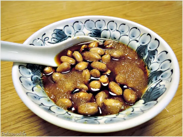 炒香的花生使用五印醋醃製後搭配砂糖食用