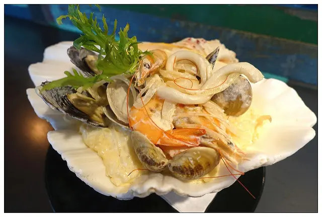 上方超彭湃的海鮮配料有淡菜、蛤蜊、鮮蝦和花枝