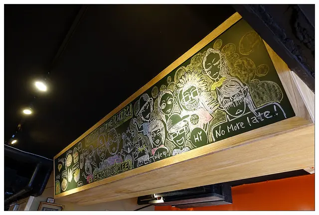 飲料吧上方的小黑板上有手繪的可愛圖樣
