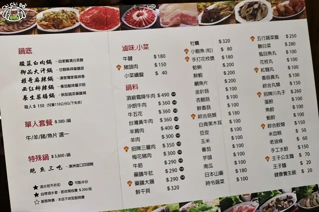酸菜白肉鍋、御品大汗鍋、權哥麻辣鍋、西紅柿辣鍋、養生藥膳鍋