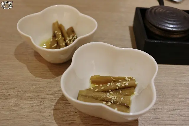 招待的小菜牛蒡吃起來硬硬脆脆甜甜的。