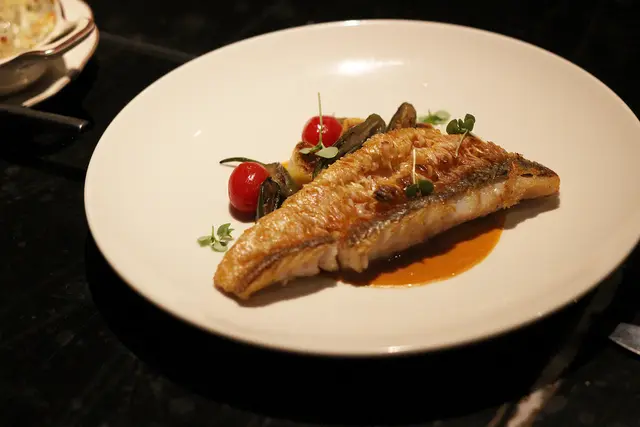 保留魚鱗將外皮炸得金黃焦脆是義法料理常見的手法,魚鱗酥脆魚肉細嫩,相當好吃