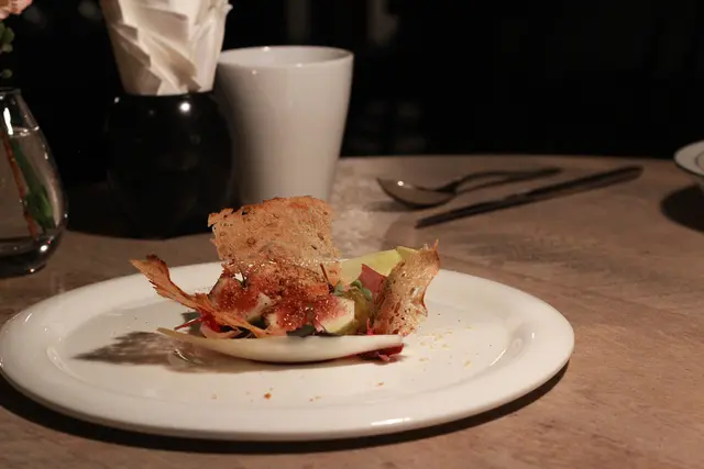 令我驚喜的是無花果嚐起來竟有點鹹味,不知是麵包薄片的鹹還是上頭灑了鹽,總之相當對味好吃