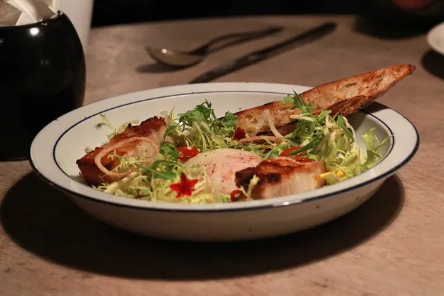 喜歡主廚以台灣的噶瑪蘭黑豬五花厚片替代一般常見的煎培根丁,富有新意而且口感很好