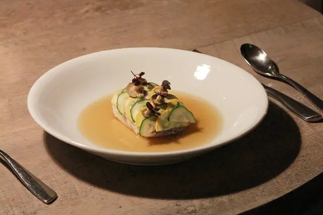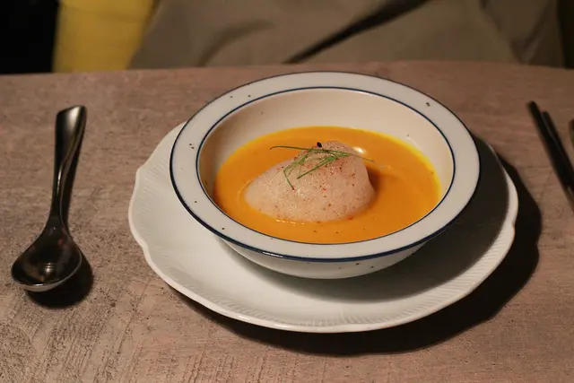 鱸魚的肉質相當細緻軟嫩,配上有點香料味的鮮蝦清湯,淡雅卻鮮美
