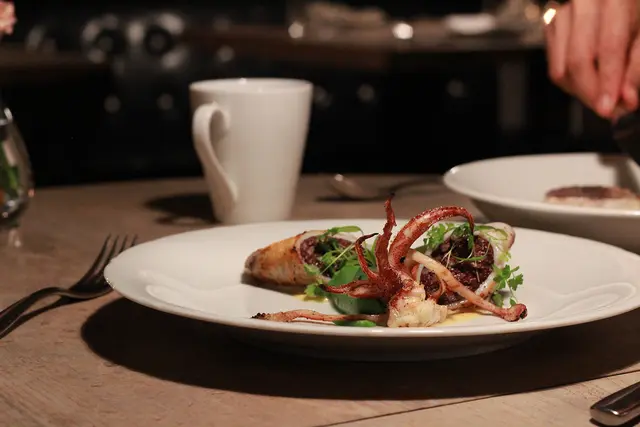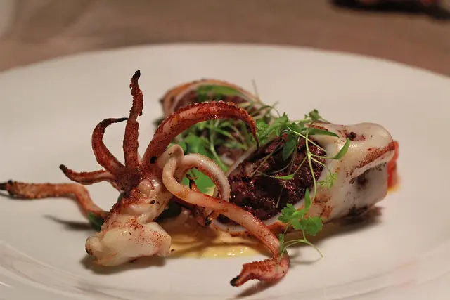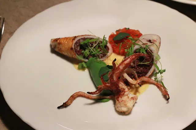 這裡主廚發揮創意,將血腸填入透抽裡,搭配番茄和香檳奶油醬汁