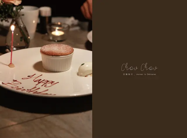 訂位時餐廳詢問當天聚餐目的,特地在壽星的甜點上畫了happy birthday的字樣