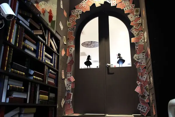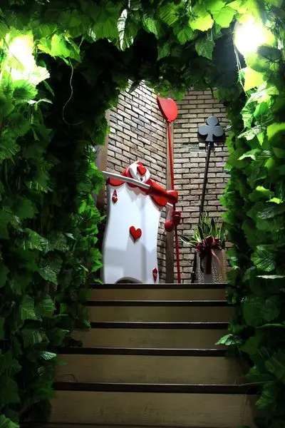 以愛麗絲為主題的夢幻餐館Alice Is Coming來自愛麗絲,樓梯設計成故事的場景,