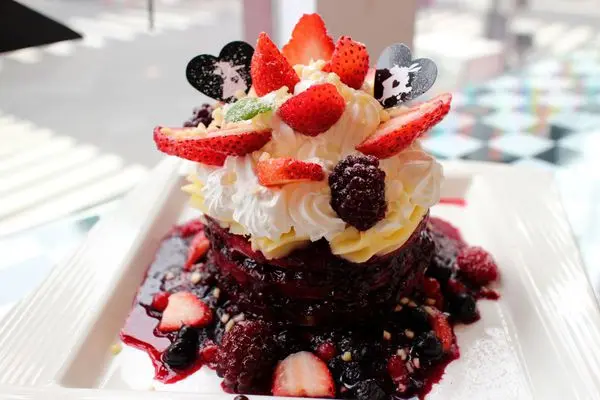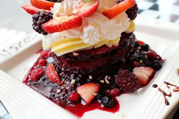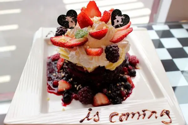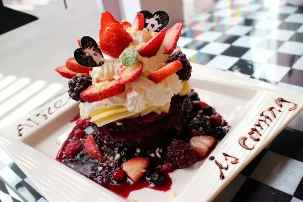 綜合莓果美式煎餅送上桌,漂亮的模樣就是很會吸引住客人的目光。