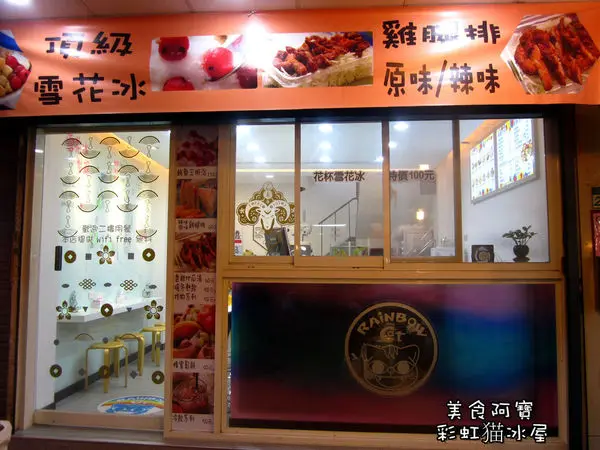 彩虹貓冰屋是一間兩層樓的店面,因為會被人潮跟攤販擋住的關係,