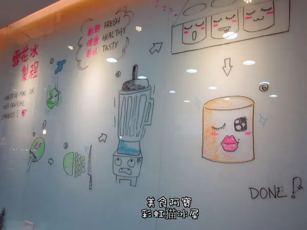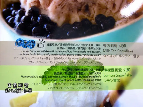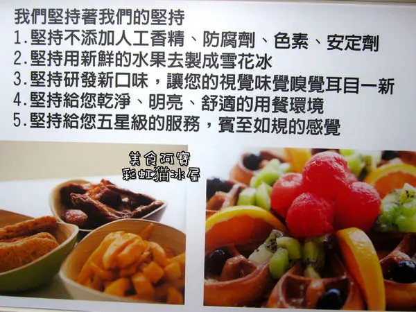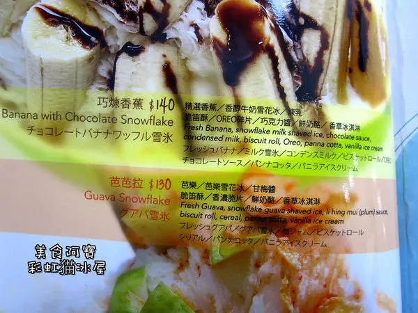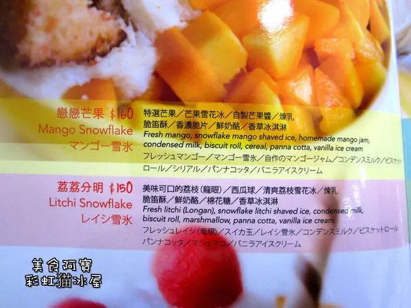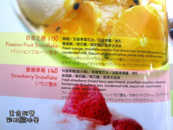 彩虹猫冰屋主打是自製的水果冰磚,用新鮮水果製作而成的雪花冰,