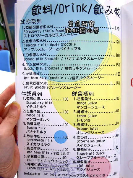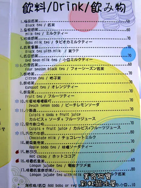 彩虹猫冰屋的飲料選擇蠻多樣的,有冷飲、熱飲、冰沙、果汁。