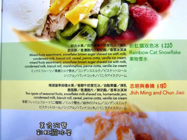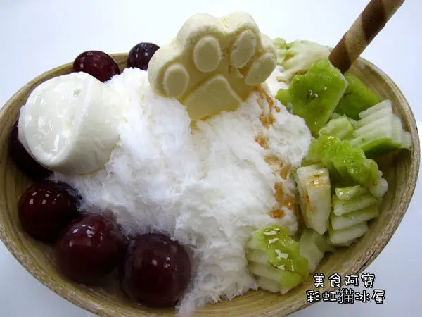 彩虹猫冰屋的招牌主打商品,就是用新鮮水果去製作的雪花冰,