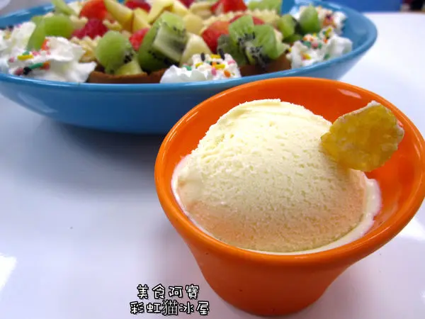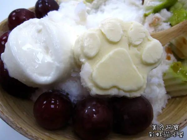 除了水果雪花冰以及新鮮水果之外,還有可愛貓掌造型的香草冰淇淋,