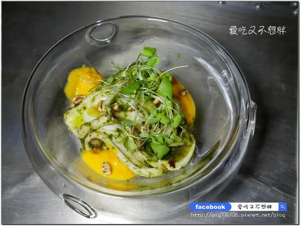 裝菜的盤子是透明的玻璃碗,看起來好特別又漂亮