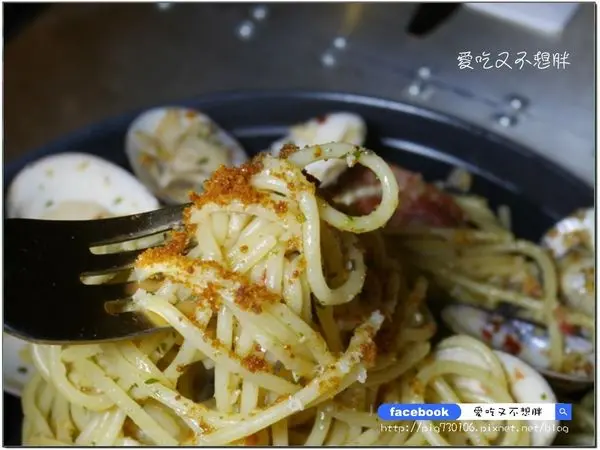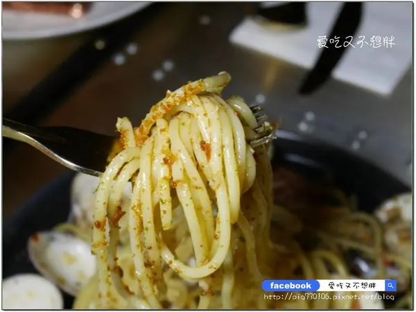 除了配菜、小點心好吃之外,這邊的主餐也很不賴,像這個蛤蜊義大利麵,上頭可是撒上烏魚子粉來增加香氣及鮮味~