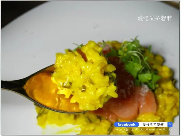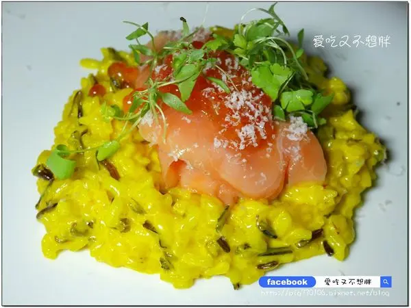 再來這個煙燻鮭魚紅花奶油鮭魚卵燉飯可不簡單,除了上頭滿滿的鮭魚卵之外,這裡頭可是加了加拿大黑野米!