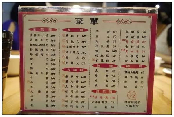 來看一下MENU~食材的種類基本上都還蠻齊全的