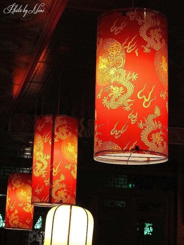 特別喜歡這一盞盞紅底押上金龍圖騰的掛燈,和整個金碧輝煌的屋頂相呼應