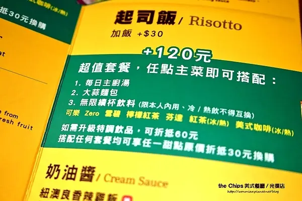 點主餐可以加價成超值套餐,便可享有湯品,大蒜麵包及無限續杯飲料,