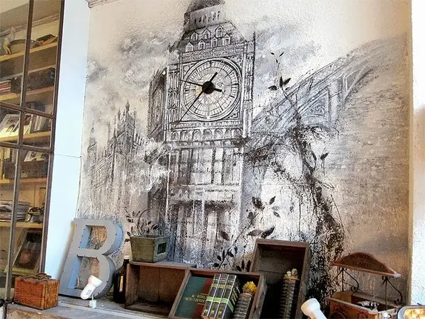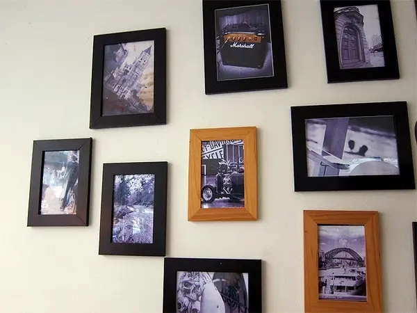牆壁上的一處,不規則的相框掛著黑白照片,營造經典復古的感覺