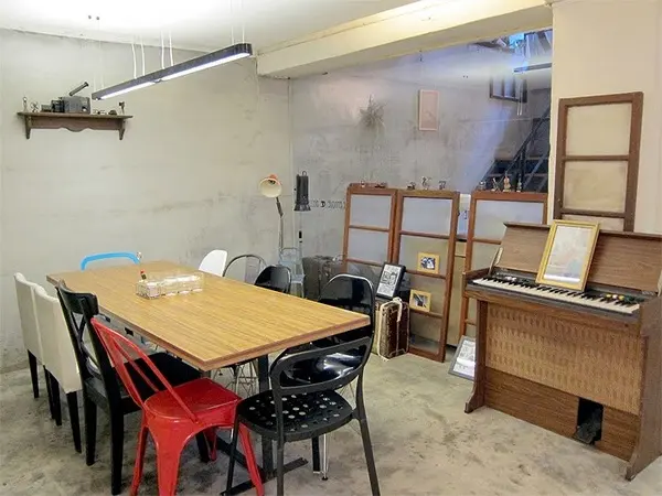 B1的環境很寬敞,多了許多復古的小物來擺設,像是40年代的風琴,我家以前就有一台咧!還有一些小小裝飾品,像是早期的彈珠台、電話、破舊的喇叭等等...地板刻意以不經處理的水泥地,讓整體呈現非常的像40、50年代的樣子