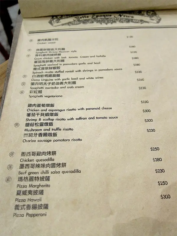 美好年代裝潢給人一種很復古懷舊的感覺,一進門看到不管是地板、擺設、壁畫、桌椅、甚至是服務生的制服都很像回到40、50年代的感覺,很整體一致。
