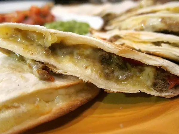 餅皮不會太厚,內餡是牛肉肉醬混著起司,咬下去會牽絲喔~