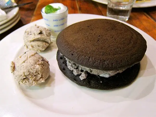 好扎實的內餡,這道甜食最好是兩三人分著吃,巧克力鬆餅皮非常的鬆軟,內餡也有OREO的顆粒。它也非常的好切,一端上來大家就搶著品嘗!
