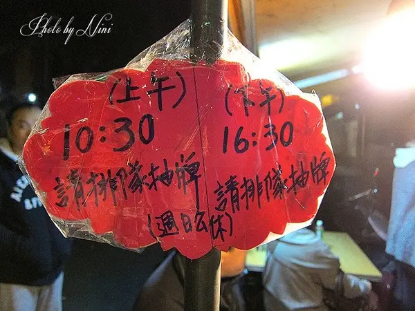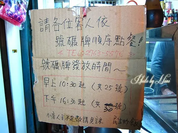 炒菜臺旁掛著一張紙版寫著早晚號碼牌發放的時間