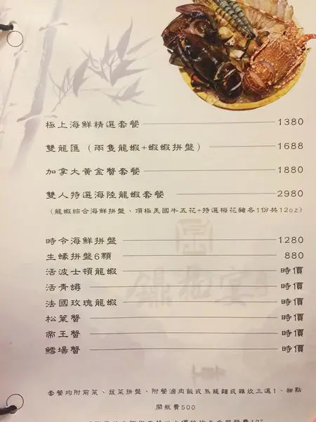 包含波士頓龍蝦、貝里斯龍蝦、白蝦、海草蝦和蛤蜊