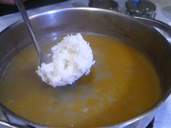 飯放進湯中慢慢熬煮,將近20分鐘,