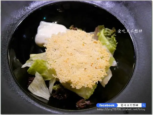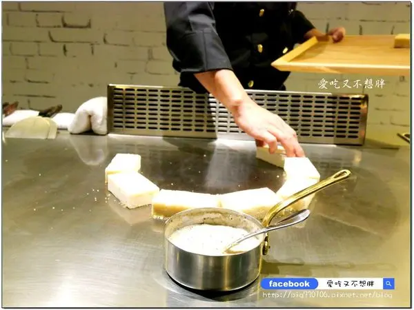 此時師傅在準備的是下一道沙拉上頭的起司餅,我第一次看到這樣的作法,很妙耶!