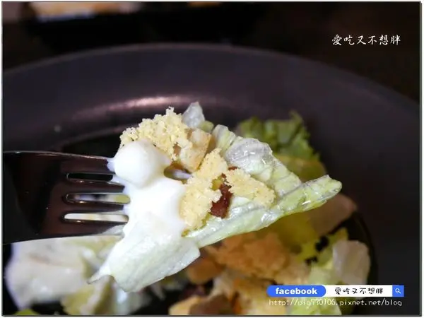 這起司餅吃之前要先敲碎,讓餅跟沙拉和在一起吃,這樣吃起來不但有起司的香氣,還添加了不少的口感!