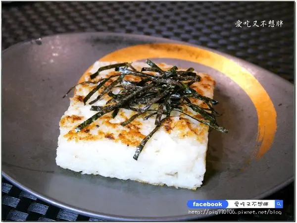 還不飽嗎?再來一個燉飯吧,把燉飯做成蘿蔔糕的形狀,外頭煎的焦香,裡頭保留著燉飯的口感,很特別。