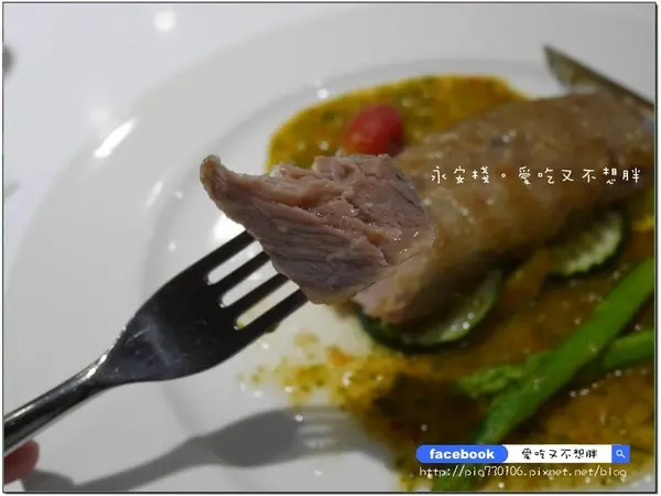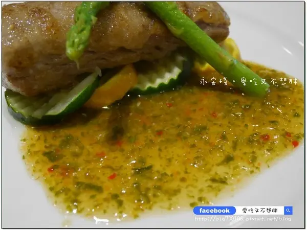 這道真的很美味,厚厚的肉片再加上中間是水蜜桃沾醬,兩者和在一起吃,不但沒有違和感,還很清爽!