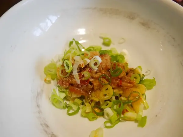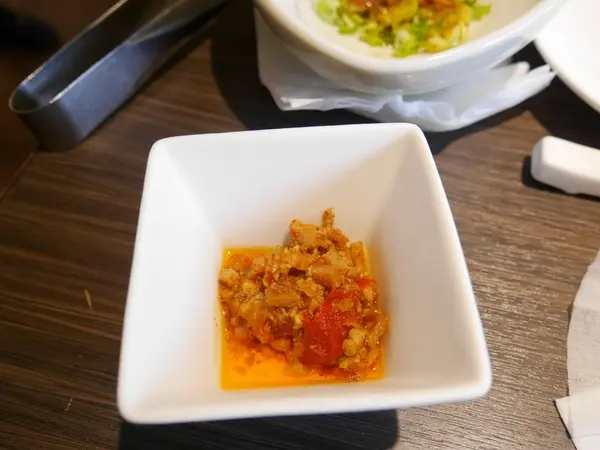 這個是特級的黃金火腿肉醬,只要是點麵的客人都會附上哦,而且還會附上蔥花,可以直接拌在麵上,非常的香!