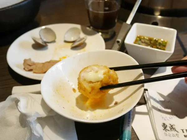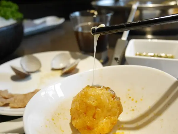 這個超大的圓圓爆漿蝦球好特別,裡頭是滿滿的起士,而且蝦仁好大一個!