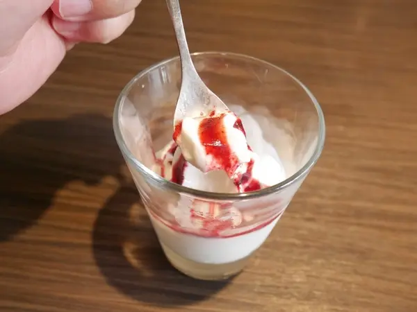 是純牛奶下去打的哦~吃起來還帶有優格酸酸甜甜的味道,藍莓的部分不會很酸,吃飽喝足後來上一杯,整個大滿足!!