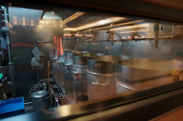 半開放式的廚房, 可以看到一桶一桶高腰湯鍋在熬煮, 據店家的說法他們的白色湯頭賣點是以豬骨/蔬菜/魚乾作材料以數個不同最適當的溫度抽取精華及熬煮而成, 他們不會再把白湯再反覆沸騰, 以最美味的溫度給不同年齡人士安心食用.