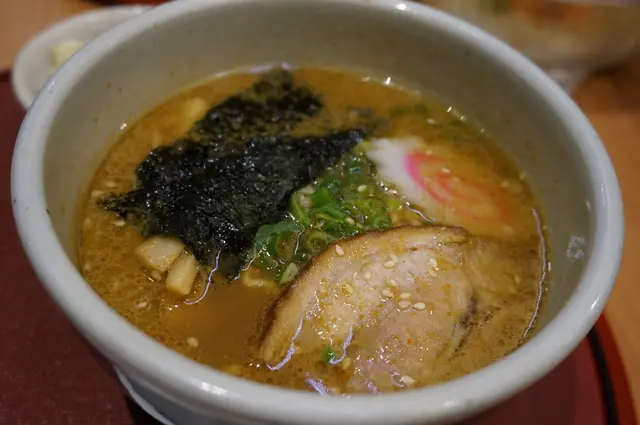 叉燒拉麵是選了醬油口味的, 鹹度及油膩感較鹽味重(應該提出少油的需求), 叉燒是肥瘦各半, 吃起來也是嫩中帶點咬勁. 湯頭部分是不錯喝, 就口味是重了點, 要常吃的人會比較習慣. 難怪日本人都愛喝啤酒, 配啤酒就不會油膩感那麼重XDDD