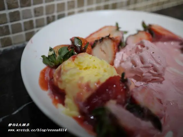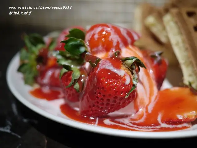 一顆顆紅豔的鮮草莓,淋上進口果醬及煉乳,在配上冰淇淋及克姆林